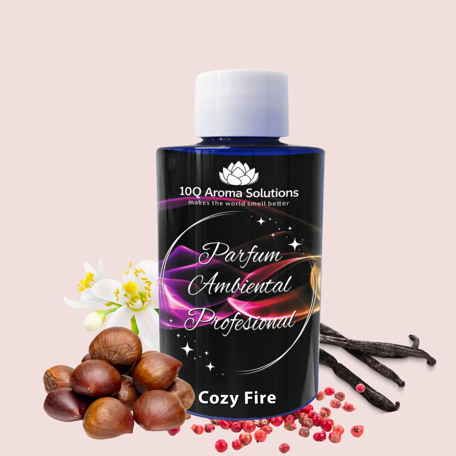 Parfum ambiental profesional Cozy Fire, conceput pentru sisteme de parfumare cu nebulizare la rece. Formula concentrata, stabila si eficienta, destinata utilizarii profesionale in spatii comerciale si rezidentiale.