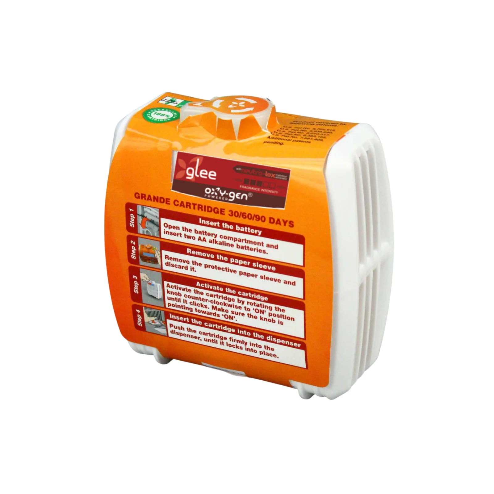 Atunci cand folositi Cartusul mare (grande), dozatorul poate fi programat sa functioneze timp de 30 de zile, 60 de zile sau 90 de zile. Cartusul contine 35 ml de ulei pur de parfum, care este in cantitate de aproximativ 7 ori mai mare decat cel dintr-o doza standard de aerosoli. Se poate schimba intensitatea parfumului la o odorizare puternica (30 de zile), normala (60 de zile) sau moderata (90 de zile).