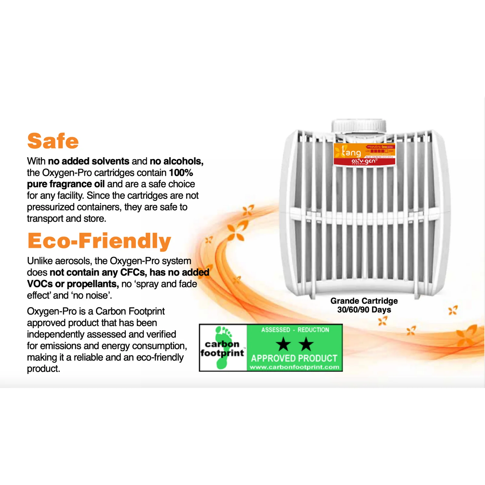 Fara dizolvanti adaugati si fara alcool, cartusele Oxy-Gen Grande contin esenta 100% pura de parfum si sunt alegerea sigura pentru orice spatiu. Deoarece cartusele nu sunt recipiente sub presiune, pot fi transportate si depozitate in siguranta.