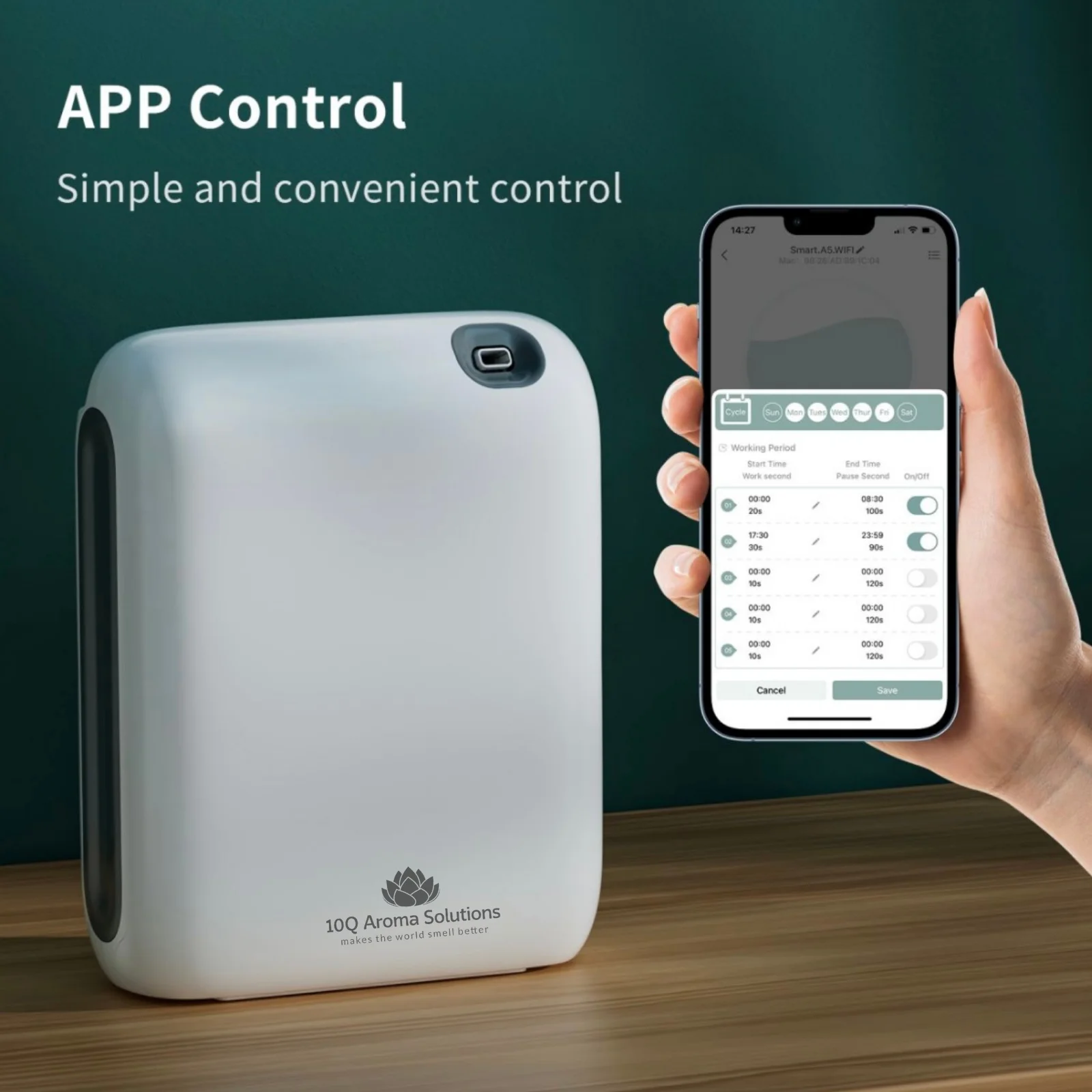 Compact, silentios si performant, acest odorizant profesional ofera o solutie discreta si eficienta de parfumare ambientala pentru spatii comerciale si rezidentiale.