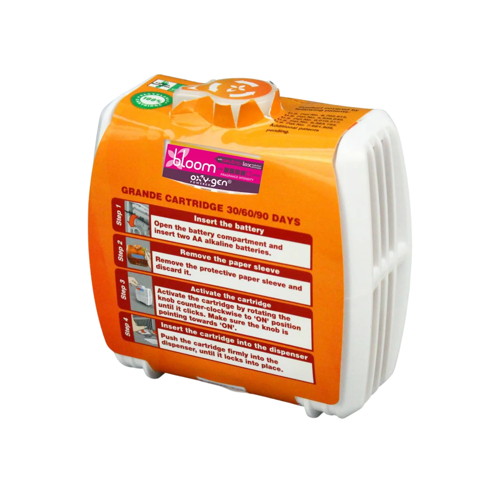 Toate Cartusele / rezervele Oxygen Grande anti-miros si cu parfum contin Neutra-lox, ingredientul nostru patentat de eliminare a mirosurilor neplacute, care este extrem de eficient impotriva mirosului de urina, fecale, mirosurilor corporale, tutun, mirosuri de animale de companie, mucegai si ciuperca, etc.