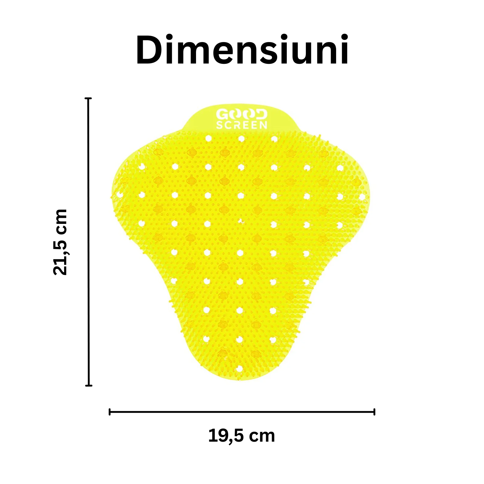 GOOD SCREEN ProScent 60+ Citrus este o sita de pisoar parfumata, conceputa pentru mentinerea igienei si reducerea stropirii in grupurile sanitare cu utilizare frecventa. Structura cu peri flexibili tip spike atenueaza impactul jetului si limiteaza dispersia stropilor in jurul pisoarului.